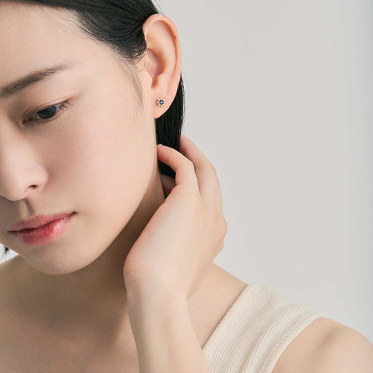 K10 一粒 誕生石 サークル スタッドピアス (9月:サファイア)❘ 43-1329