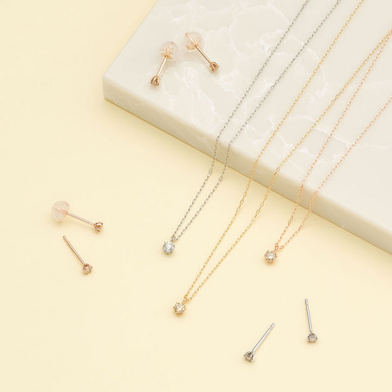 0.08ctのダイヤモンドを一粒使用した、シンプルなネックレス。