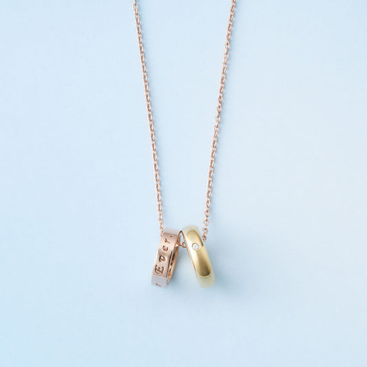 女性らしさを引き立てるピンクゴールドとシックなブラックコーティングのペアネックレス。