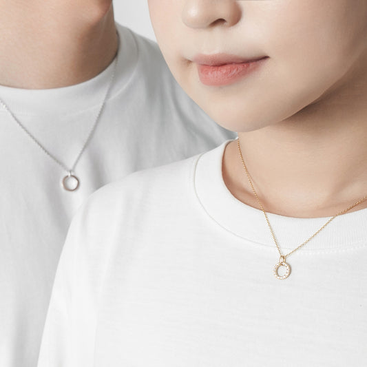 永遠の輝きを放つダイヤモンドペアネックレス。ダイヤモンドは「純愛」や「永遠の絆」の象徴とされているストーンです。