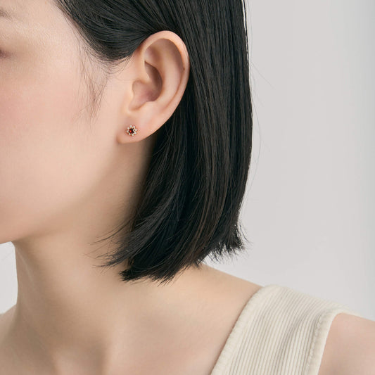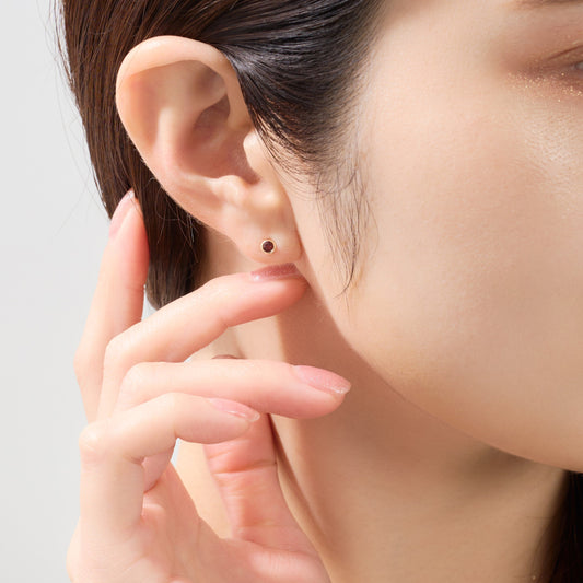 K18 誕生石×ダイヤモンド スタッドピアス (1月:ガーネット)❘ 96-3040