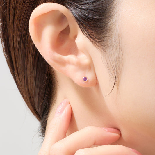 K10 誕生石 サークル スタッドピアス (2月:アメジスト)|43-1322