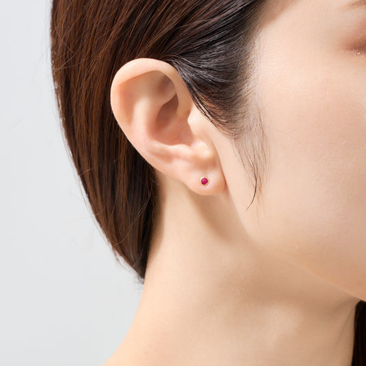 【受注生産】K18 誕生石×ダイヤモンド スタッドピアス (7月:ルビー)❘ 96-3046