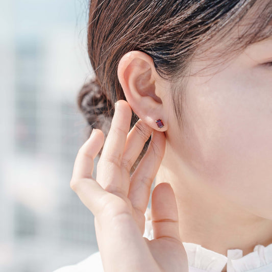 K10 誕生石 スクエア スタッドピアス (1月:ガーネット)| 43-8001