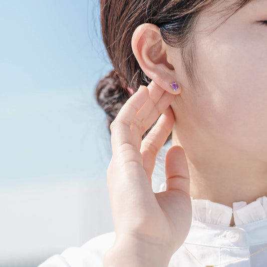 K10 誕生石 スクエア スタッドピアス(2月:アメジスト)| 43-8002