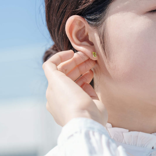 K10 誕生石 スクエア スタッドピアス(8月:ペリドット)| 43-8008