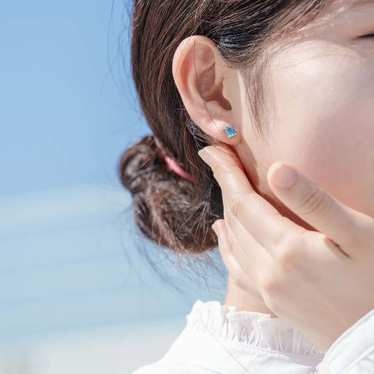 K10 誕生石 スクエア スタッドピアス(3月:アクアマリン)| 43-8003