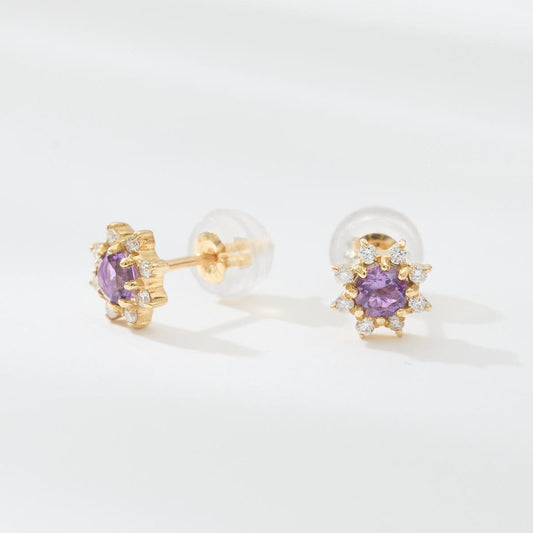 K18 誕生石×ダイヤモンド スタッドピアス (2月:アメジスト)❘ 96-3041