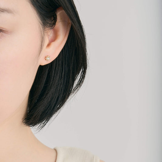 K18 誕生石×ダイヤモンド スタッドピアス (6月:ムーンストーン)❘ 96-3045