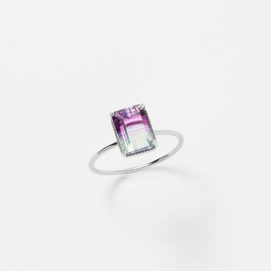 見る角度や光の加減で、淡いグリーンやパープル、ブルーが重なり合い、ひとつとして同じ表情を持たない石です。