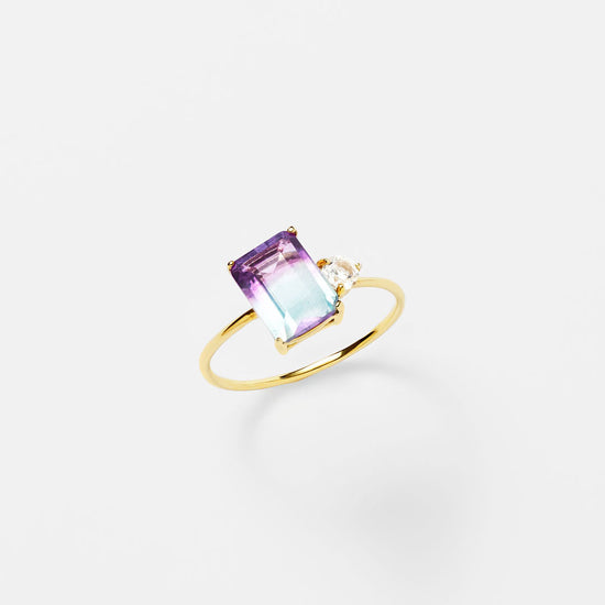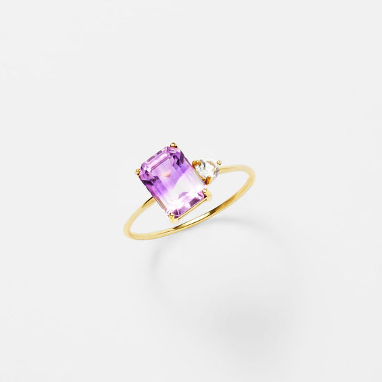 光を受けるたび表情を変えるバイカラーアメジスト。