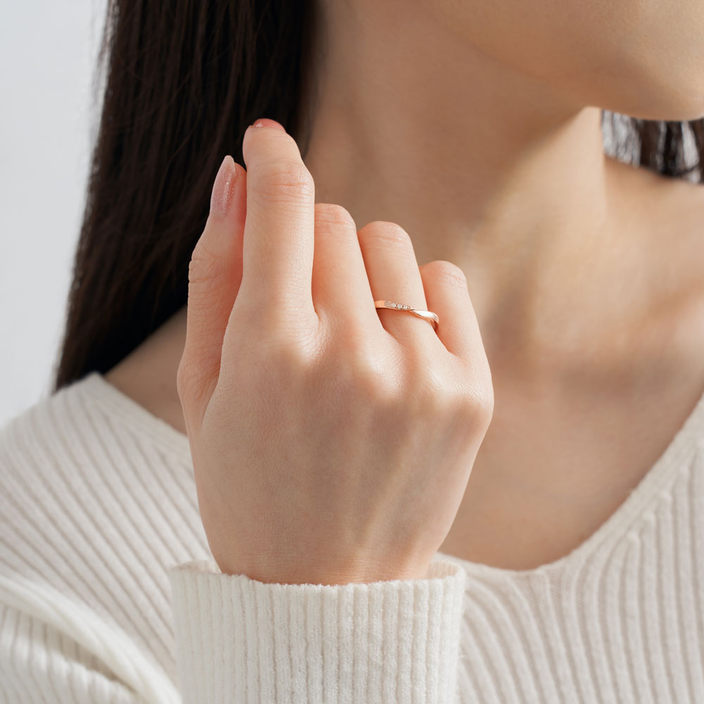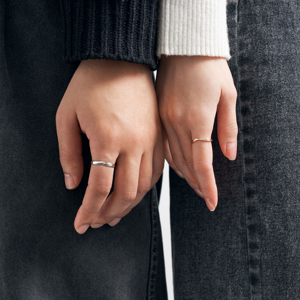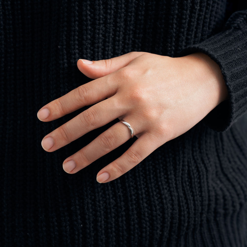 指先に自然な立体感を生み出す、緩やかなV字フォルムのシルバーリング。