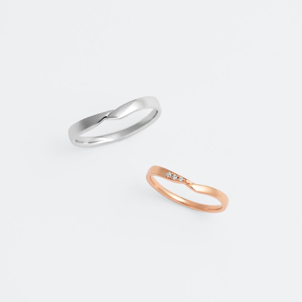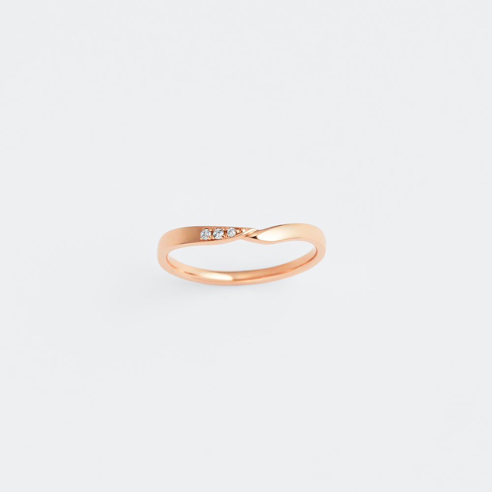 レディースデザインには、3石のキュービックジルコニアをセッティング。