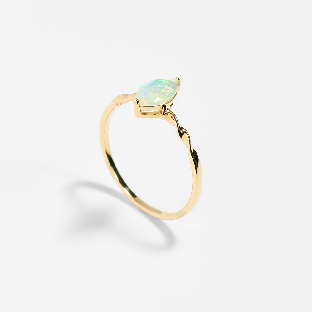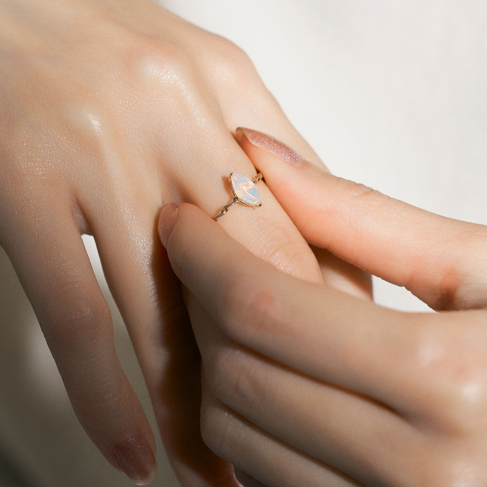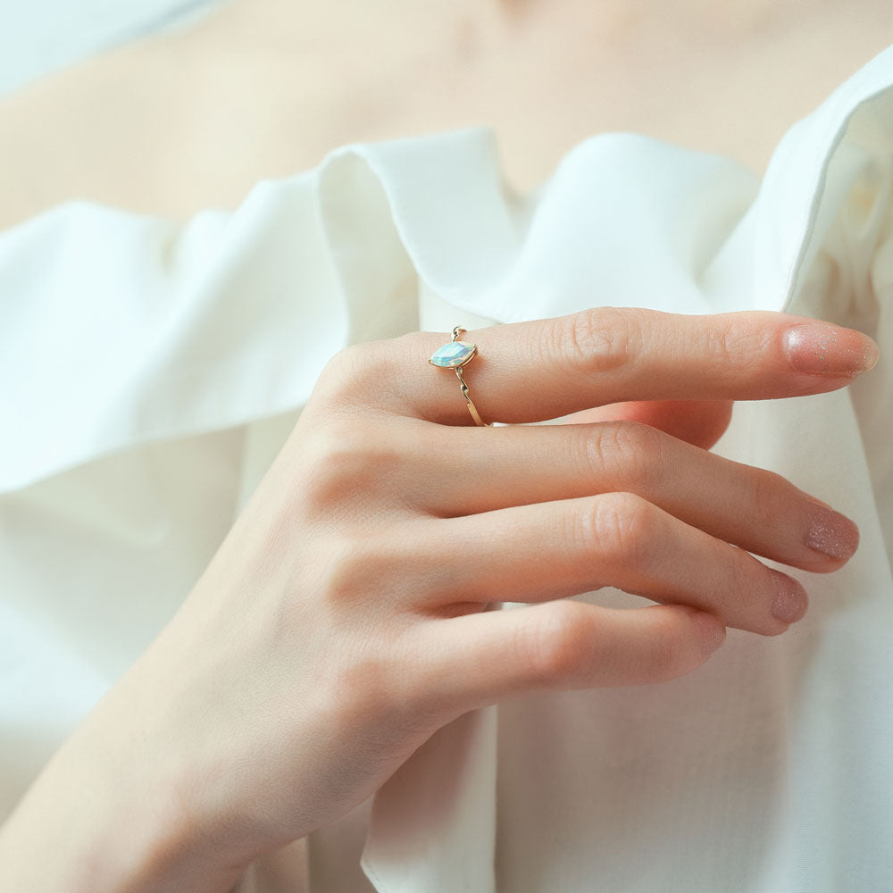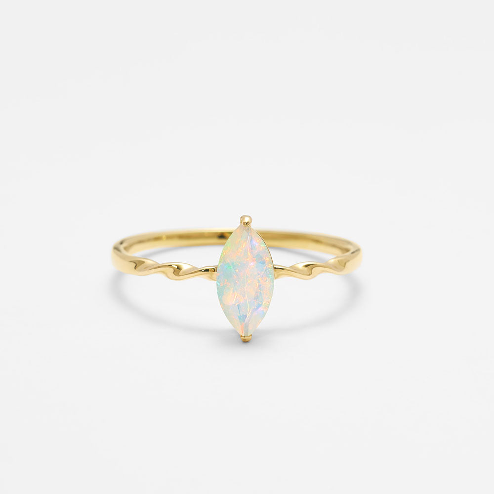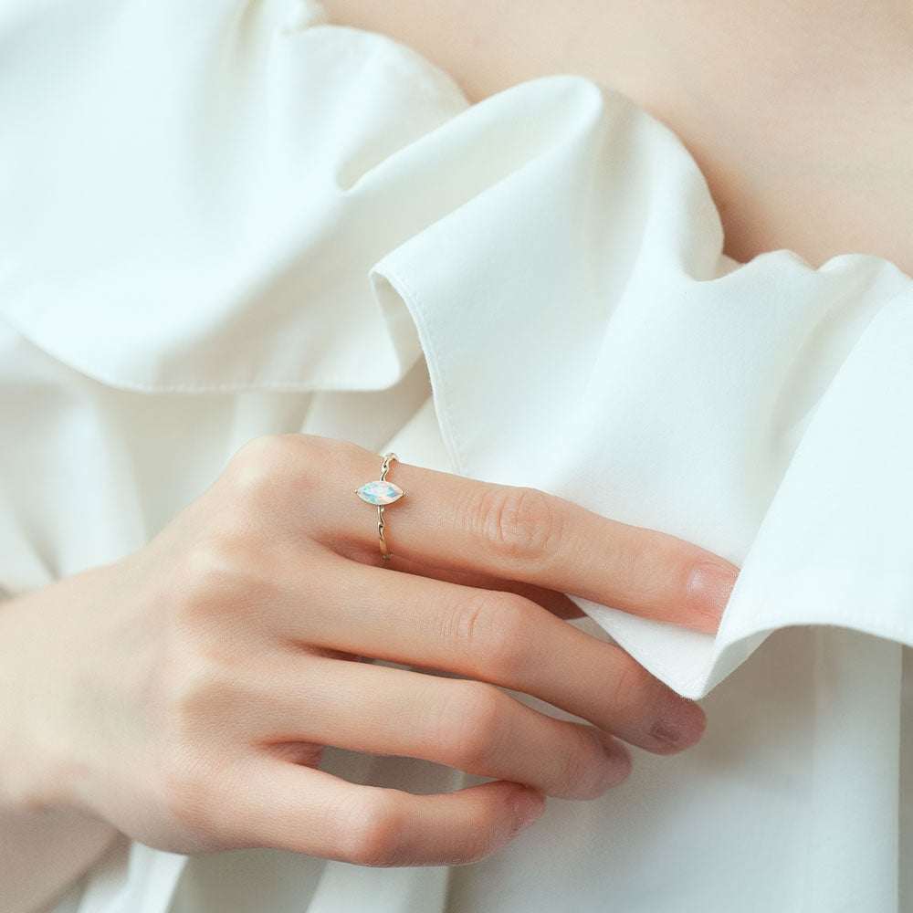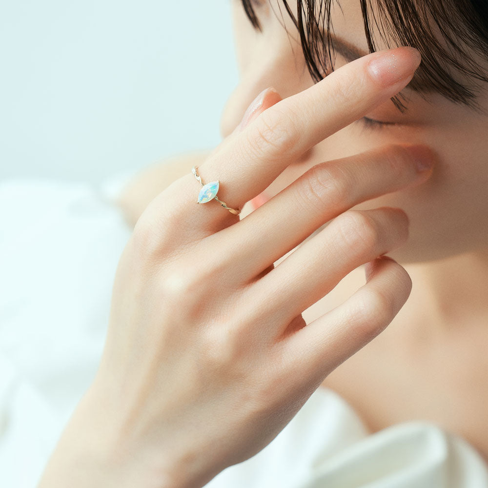 マーキスカットの天然石が、指先に凛とした輝きを添えるK10リング。