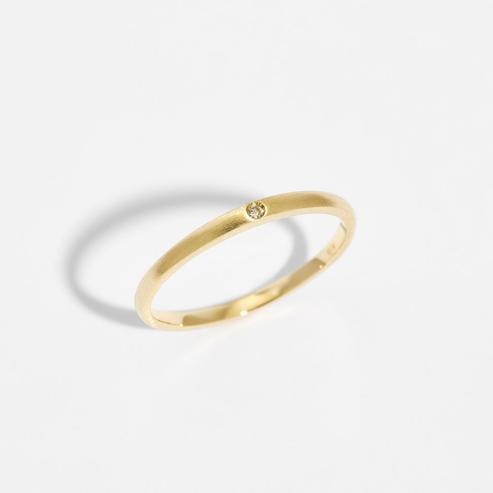 リングの表面はマット(艶消し)に仕上げ、センターにバースストーンを埋め込んだ、誕生石リングの中では珍しいタイプのデザイン。