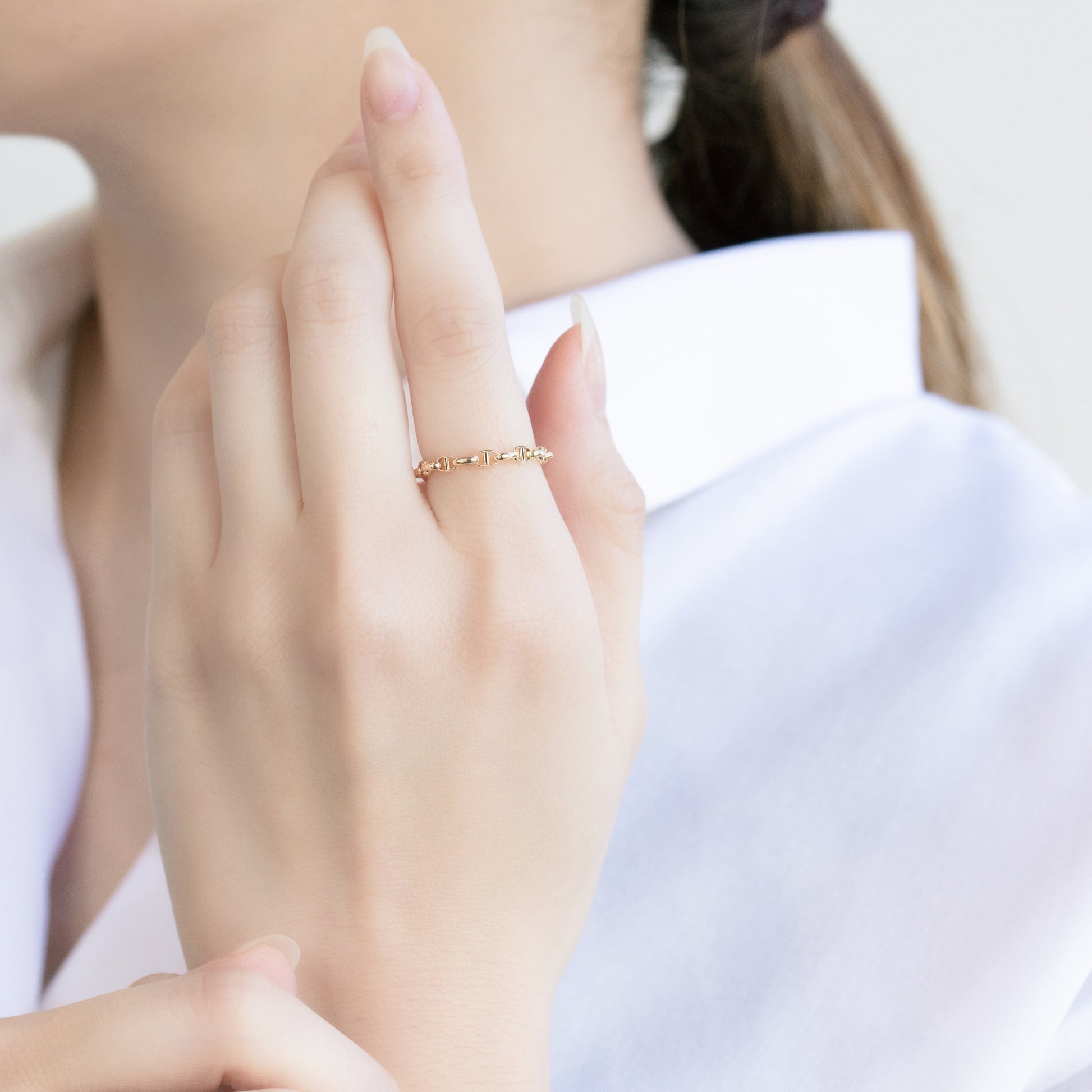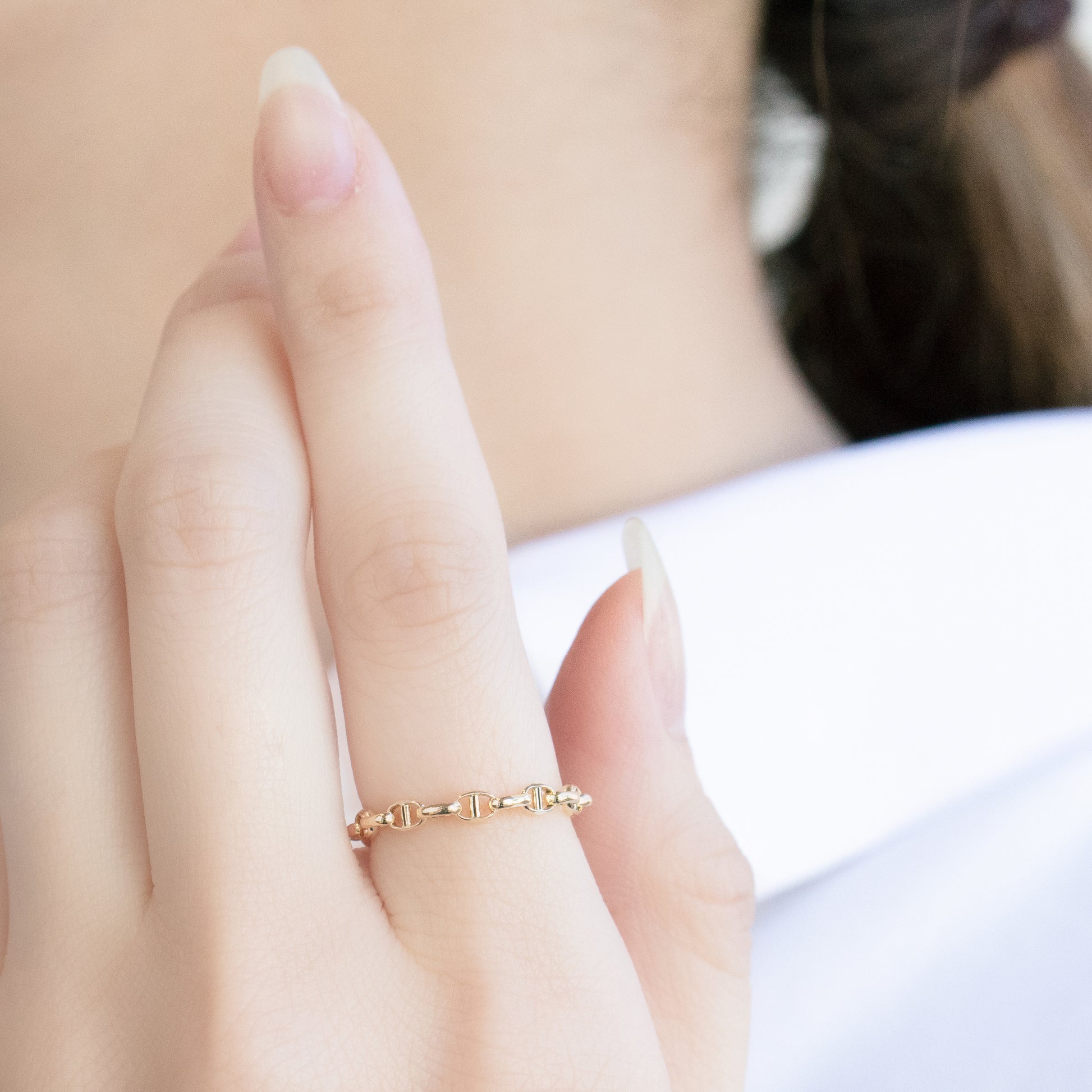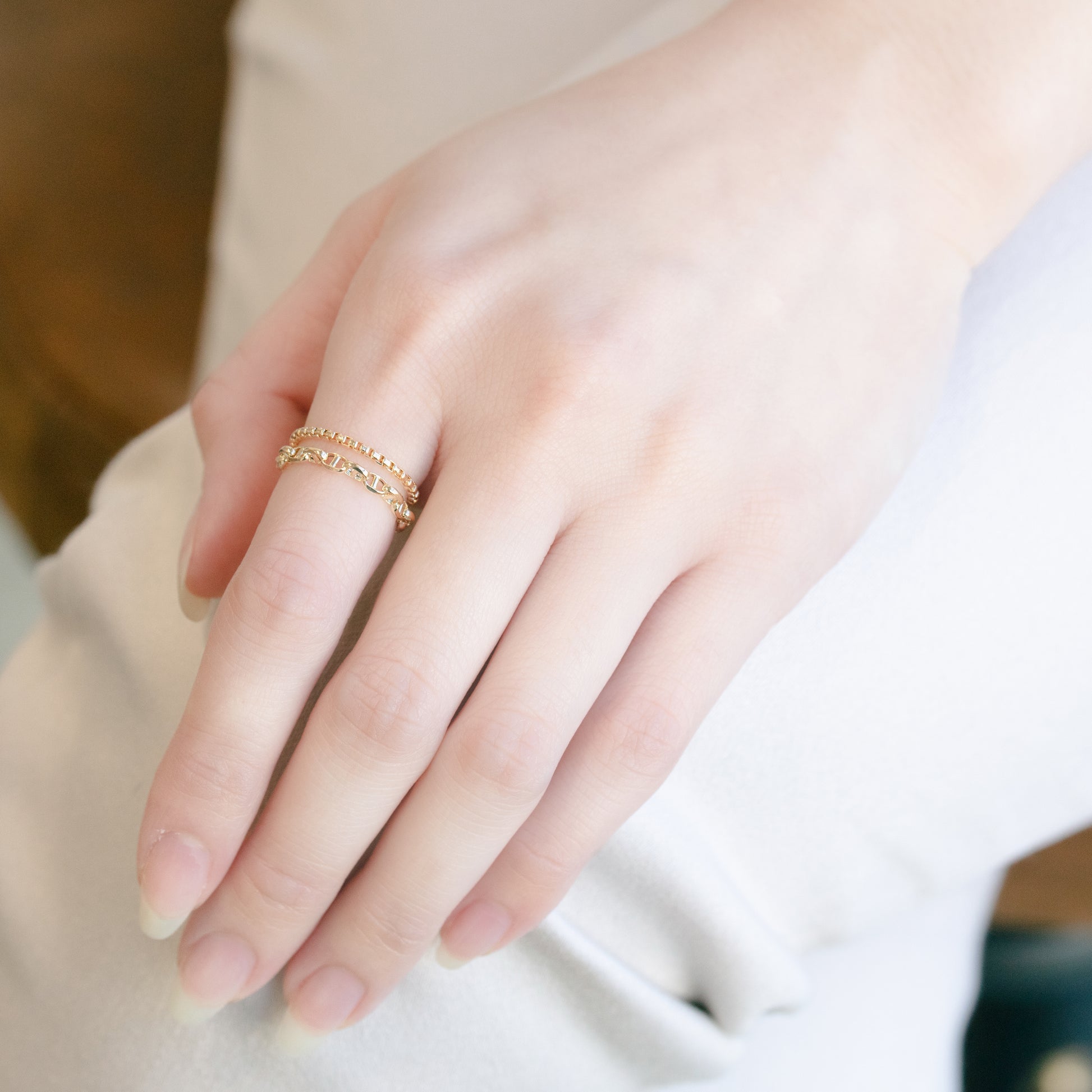 ネックレスに使われるK18チェーンをそのままリングサイズにしたチェーンリング。