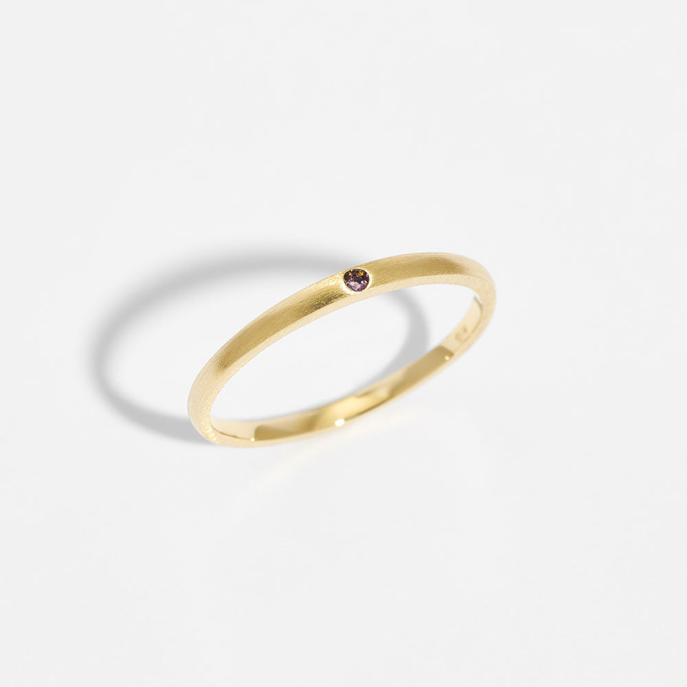 リングの表面はマット(艶消し)に仕上げ、センターにバースストーンを埋め込んだ、誕生石リングの中では珍しいタイプのデザイン。