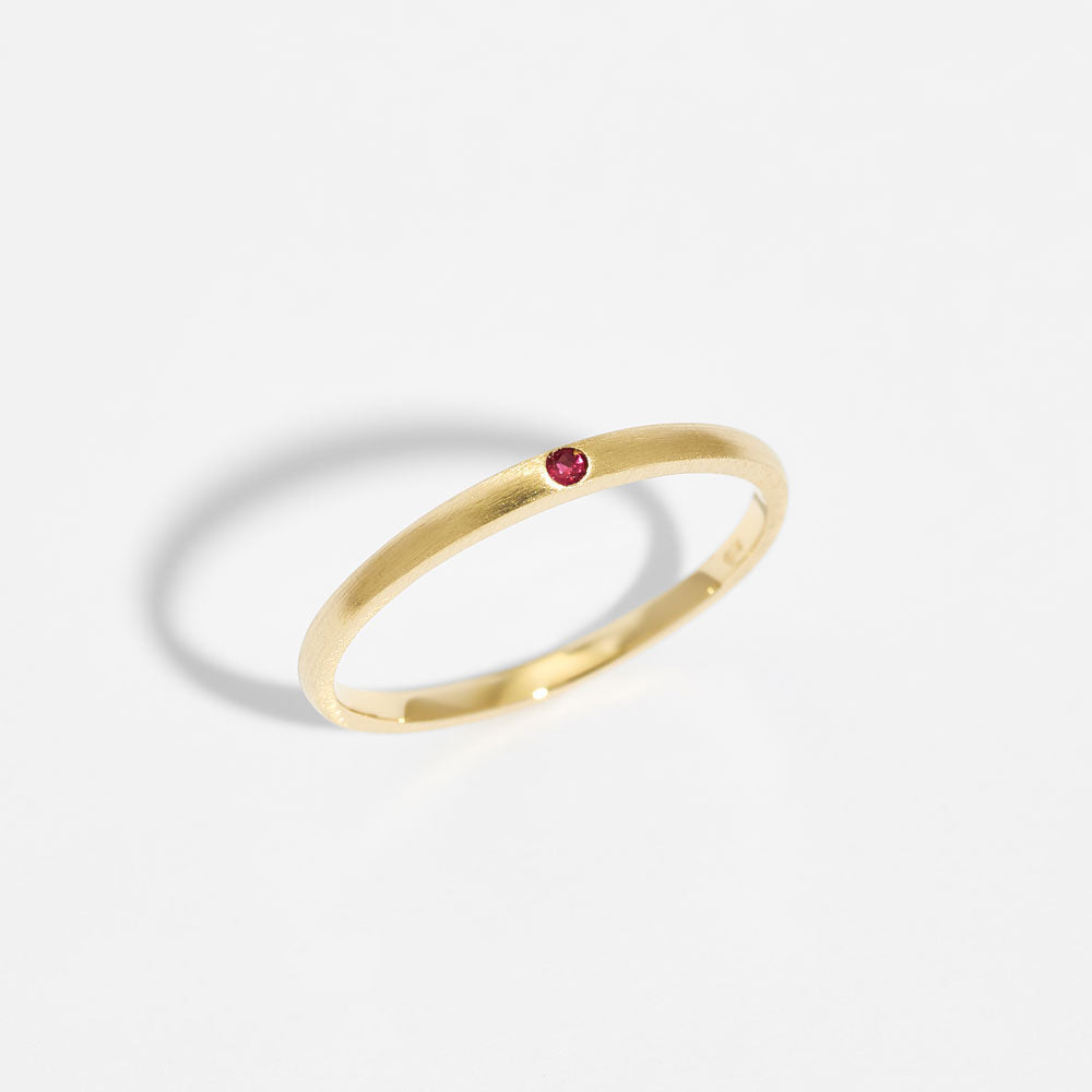 リングの表面はマット(艶消し)に仕上げ、センターにバースストーンを埋め込んだ、誕生石リングの中では珍しいタイプのデザイン。