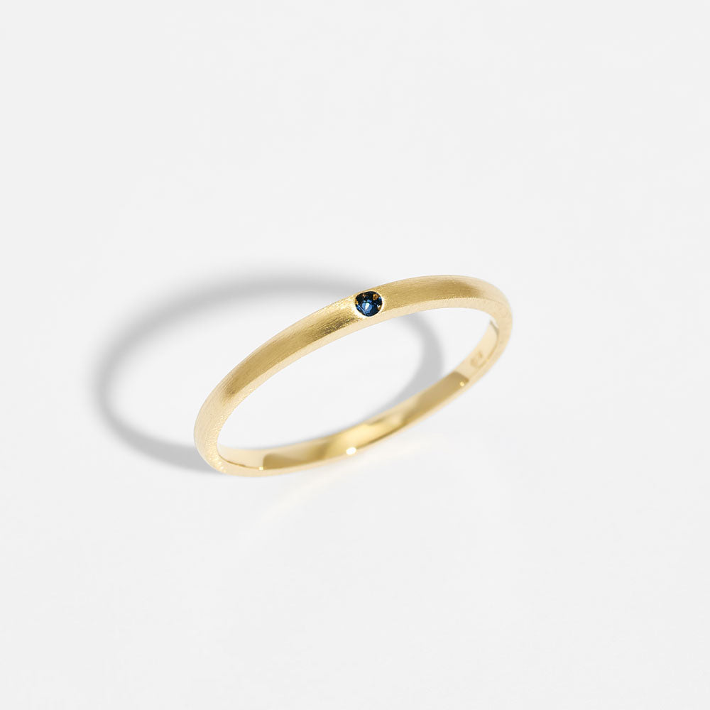 リングの表面はマット(艶消し)に仕上げ、センターにバースストーンを埋め込んだ、誕生石リングの中では珍しいタイプのデザイン。