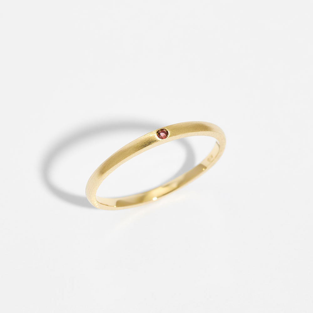 リングの表面はマット(艶消し)に仕上げ、センターにバースストーンを埋め込んだ、誕生石リングの中では珍しいタイプのデザイン。