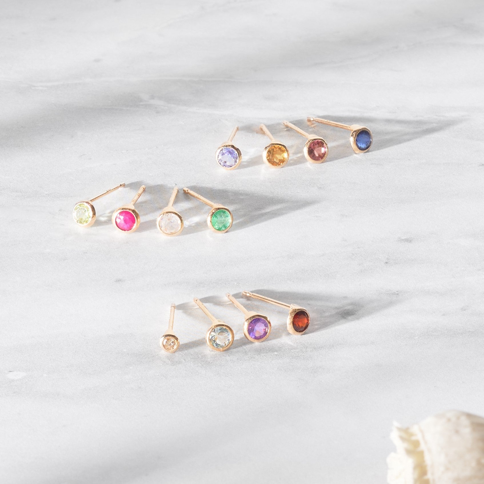 上品な10金イエローゴールドの地金がストーンを囲んだ、どこまでもシンプルな誕生石ピアス。鮮やかに透き通るストーンの美しさを最大限に活かすデザインに仕上げました。