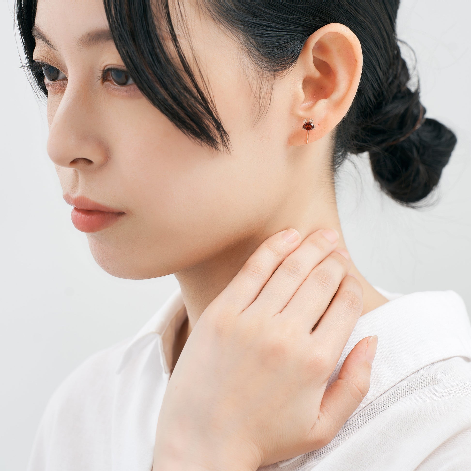 ぱっと見た感じはシンプルなガーネットのイヤリングに見え、