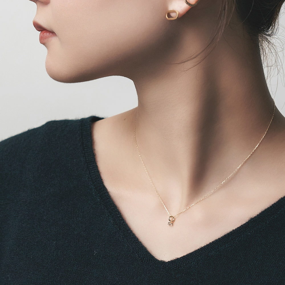 チャームのような小さなリングモチーフはデイリーコーデにも馴染みやすく、程よい存在感を放ちます。
