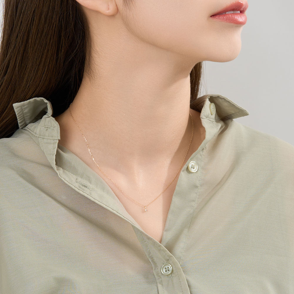 まるで夜空から一つ捕まえたかのような立体感のあるスターが、裏側からジュエルを優しく包み込む1粒ネックレス。