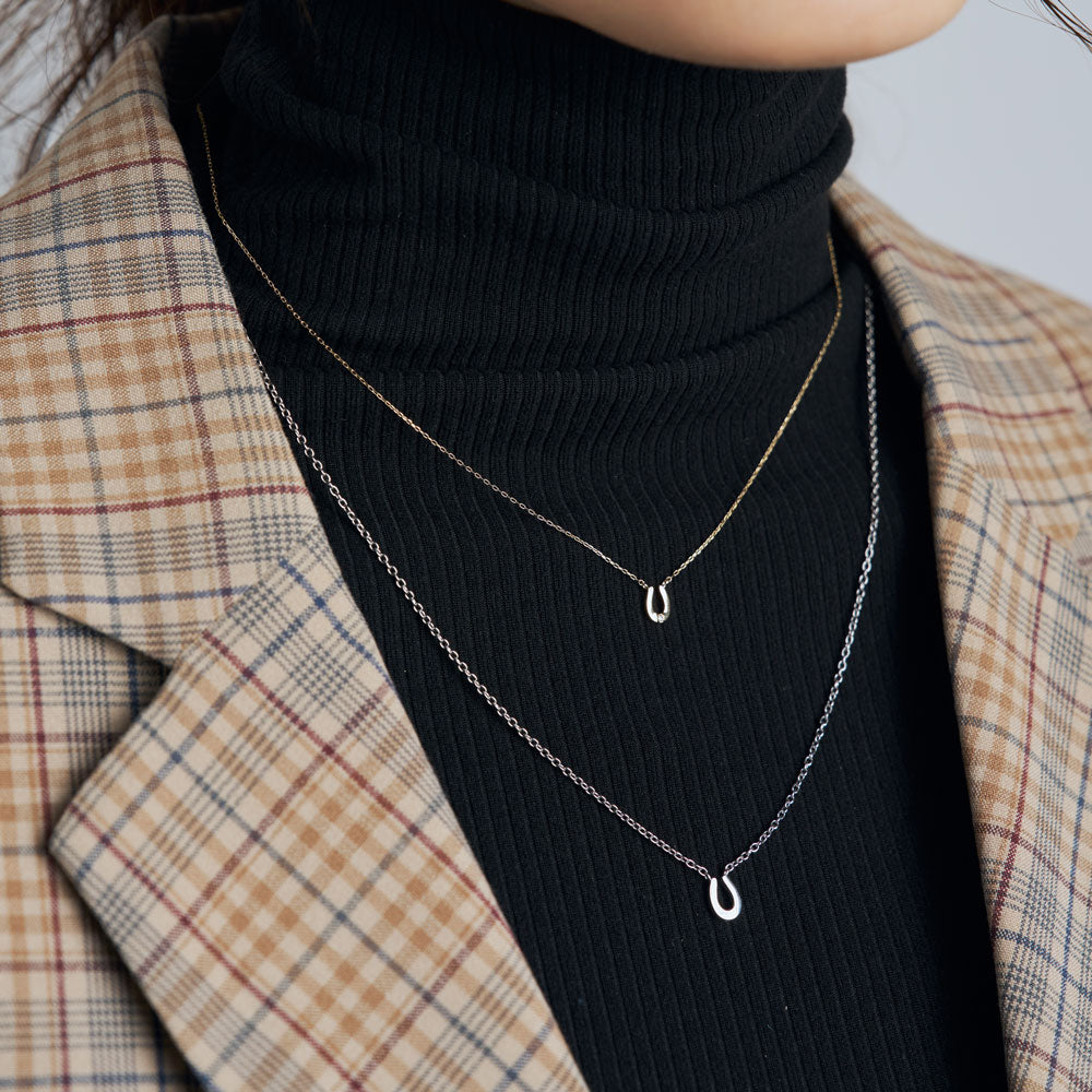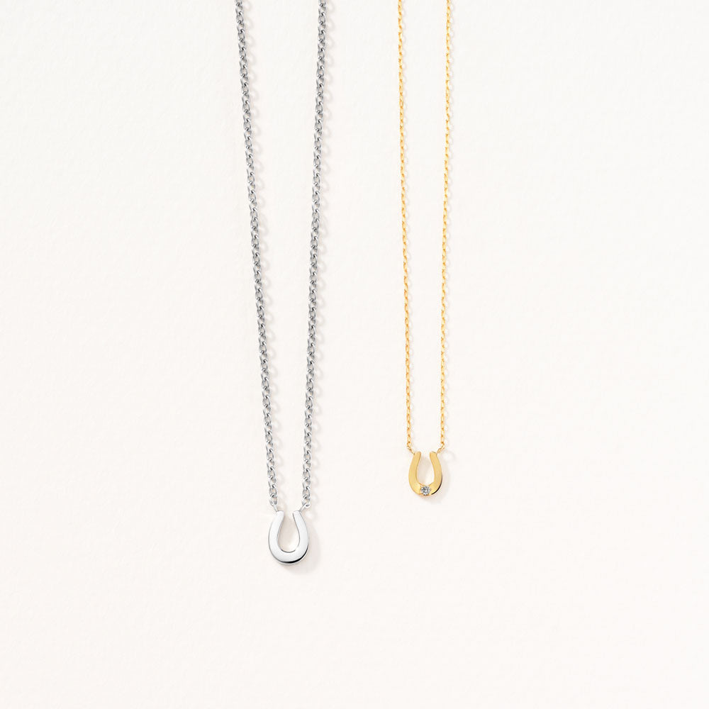 幸運を呼び込むラッキーモチーフとして人気の馬蹄ネックレス。
