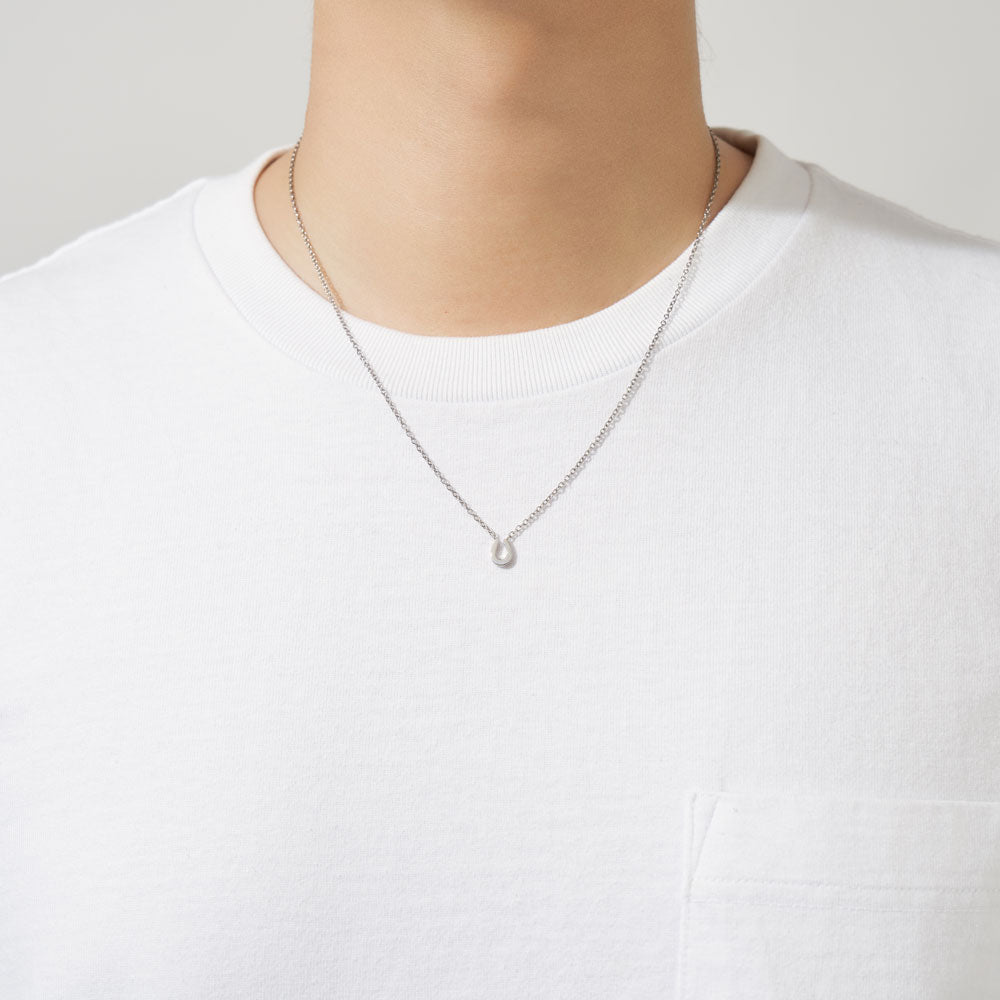 メンズデザインは、SV925にロジウムをコーティングし、落ち着いた光沢が冬の装いに馴染む、シンプルなデザイン。