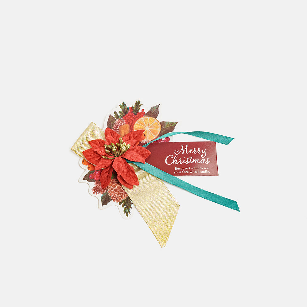 クリスマスカード&赤リボン&クリップでお包みしてお届けいたします。