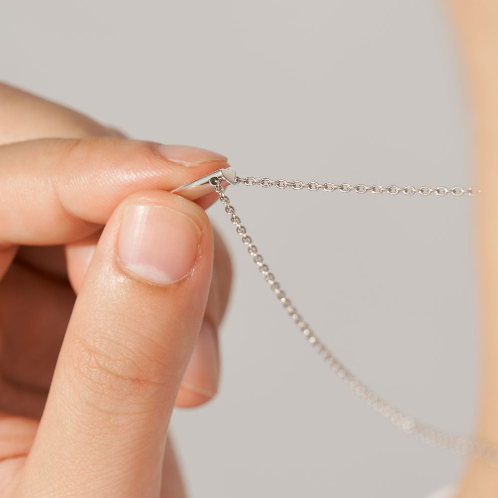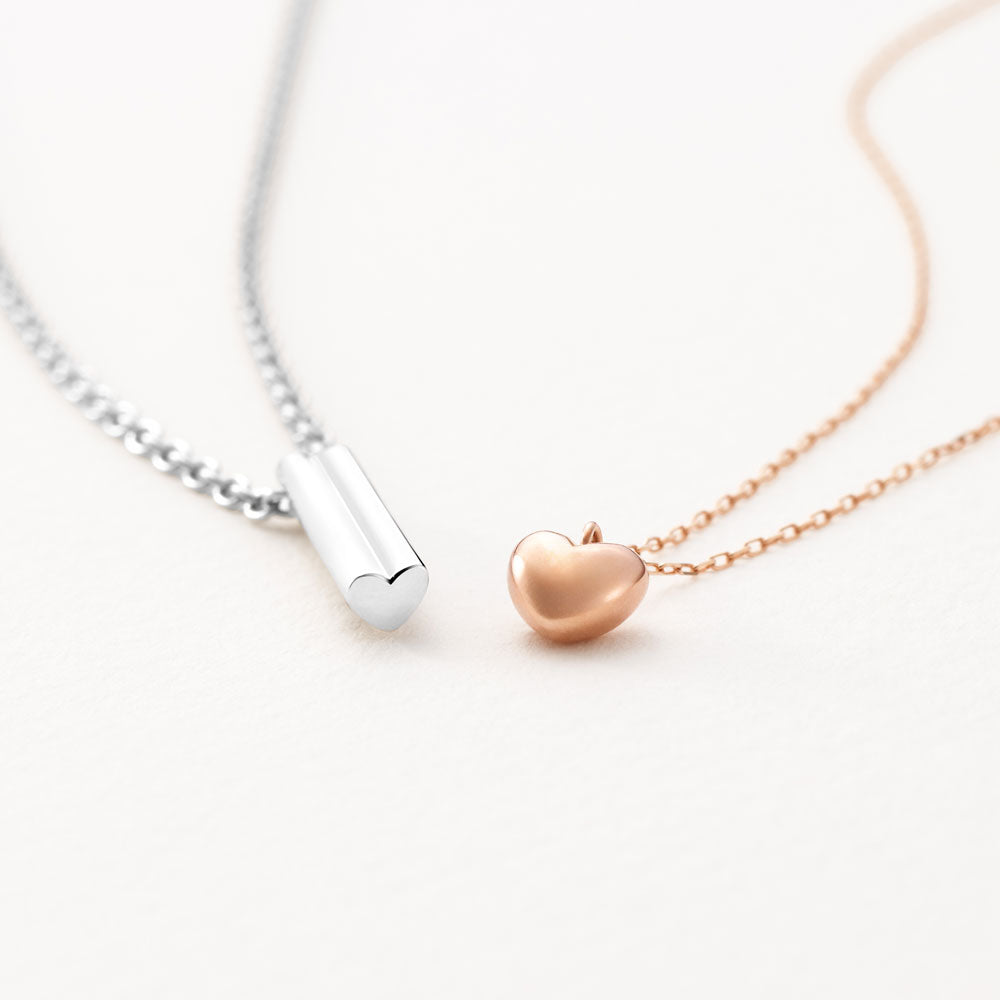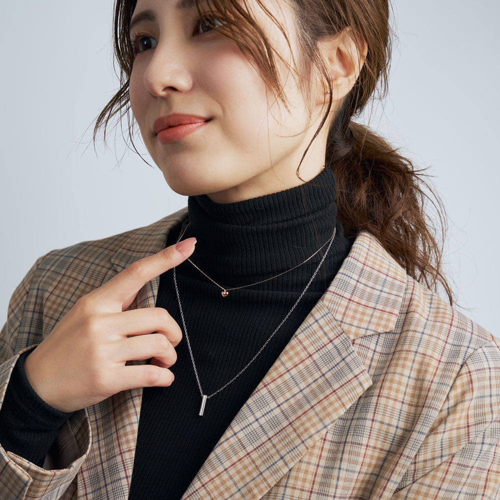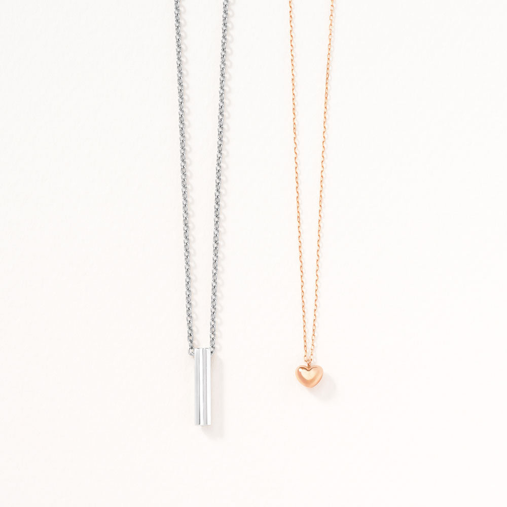 さりげなく想いを込められる、隠れハートがアクセントのペアネックレス。