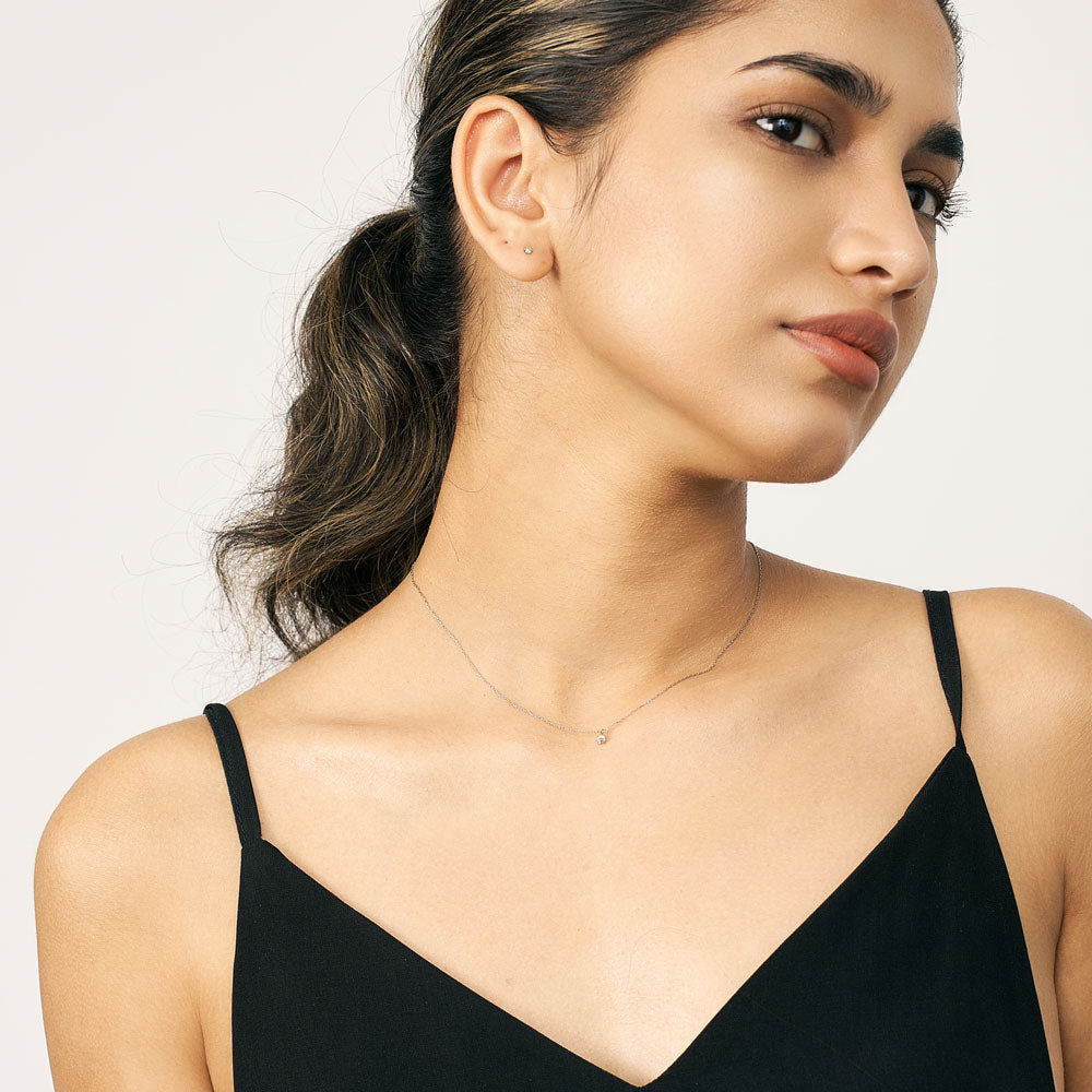 0.08ctのダイヤモンドを一粒使用した、シンプルなネックレス。