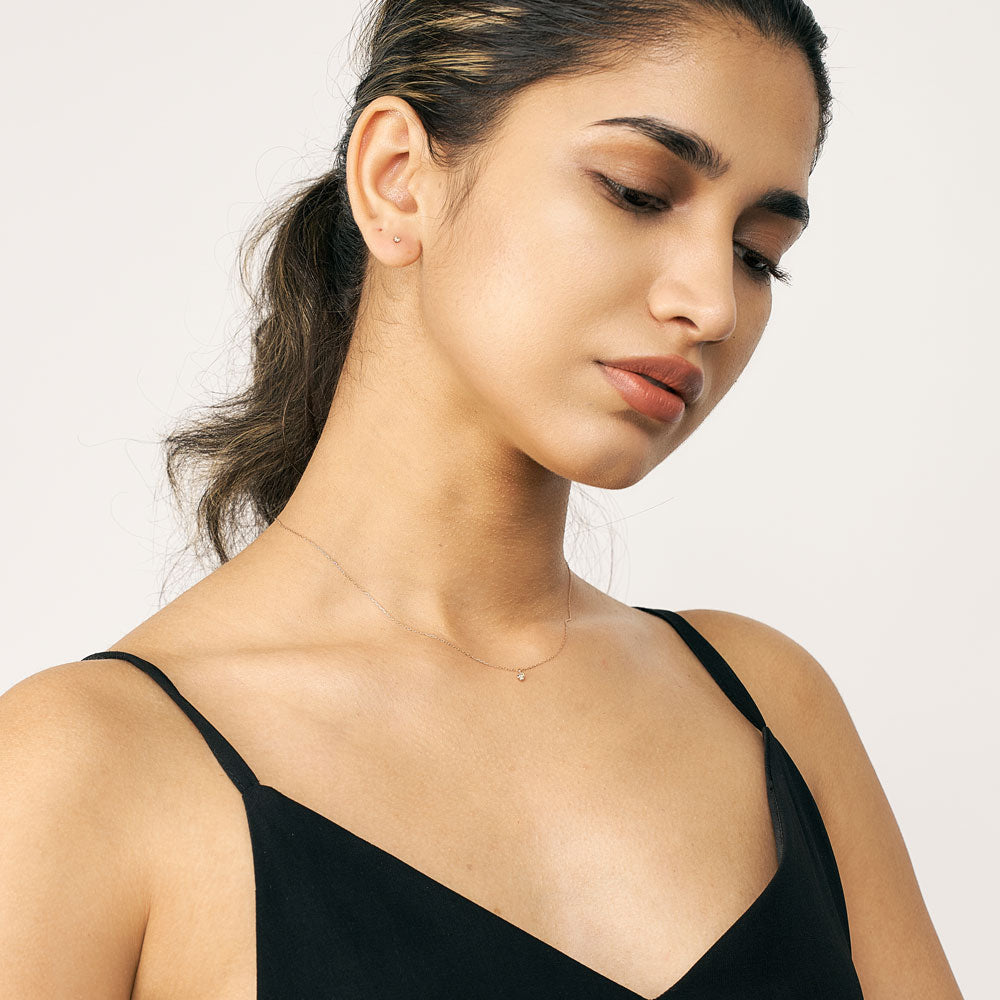 0.08ctのダイヤモンドを一粒使用した、シンプルなネックレス。