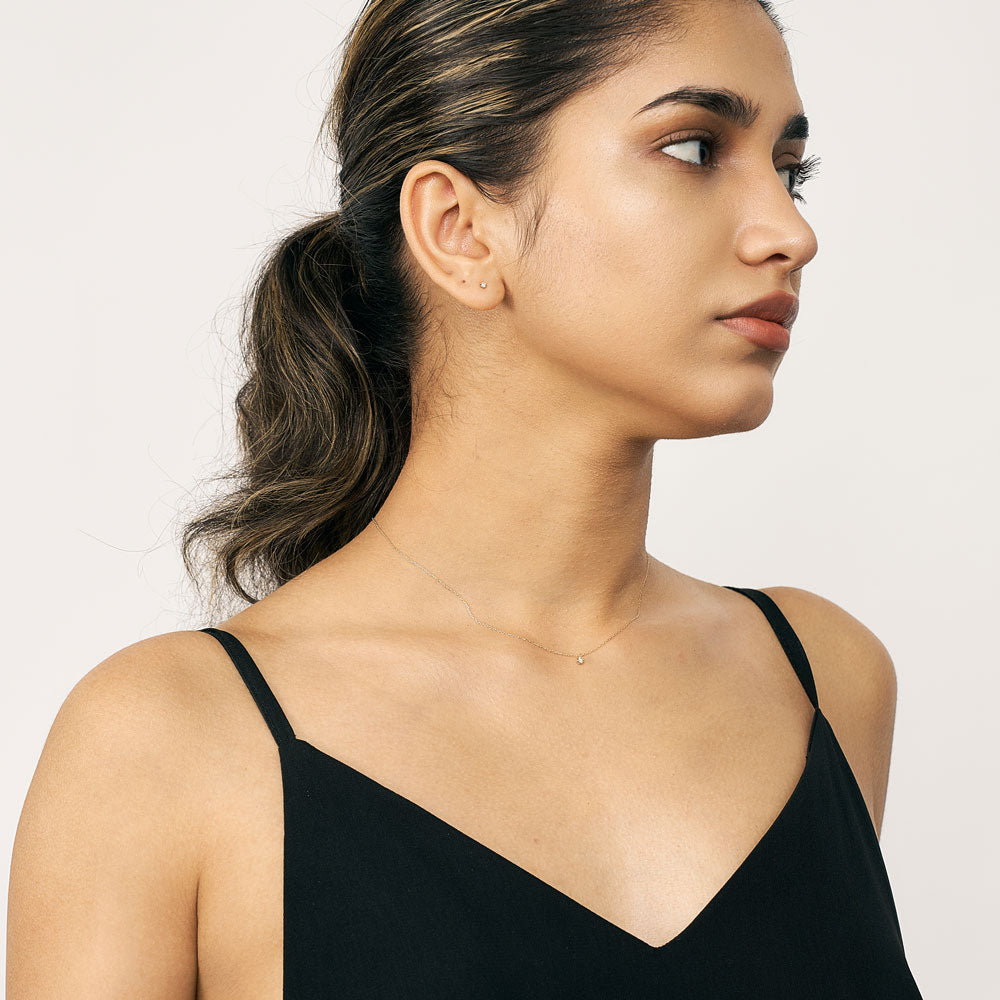 0.08ctのダイヤモンドを一粒使用した、シンプルなネックレス。