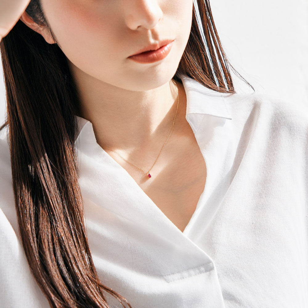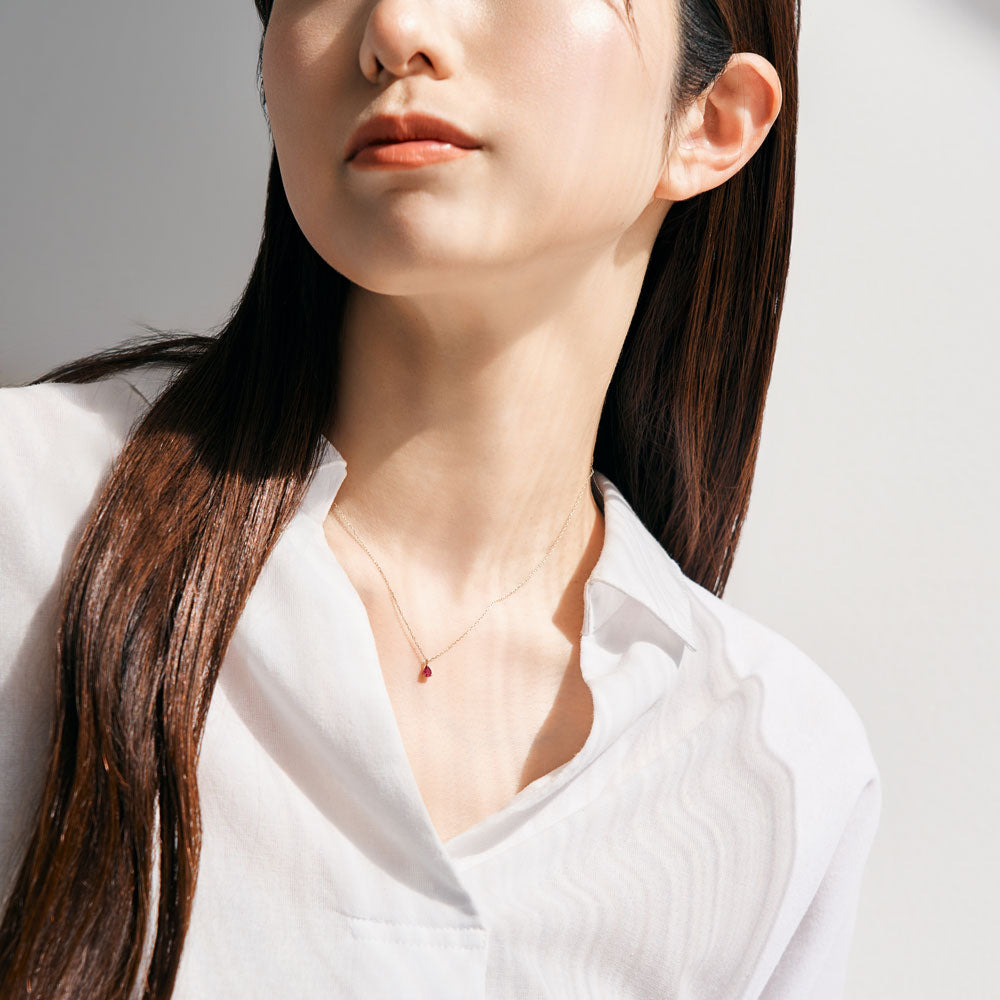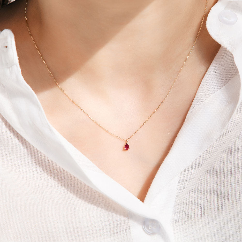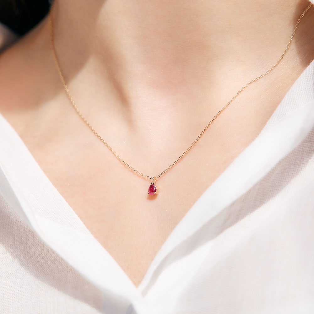 一石で零れ落ちそうな煌めきを放つティアドロップ型のカラーストーンをあしらった、誕生石ネックレス。