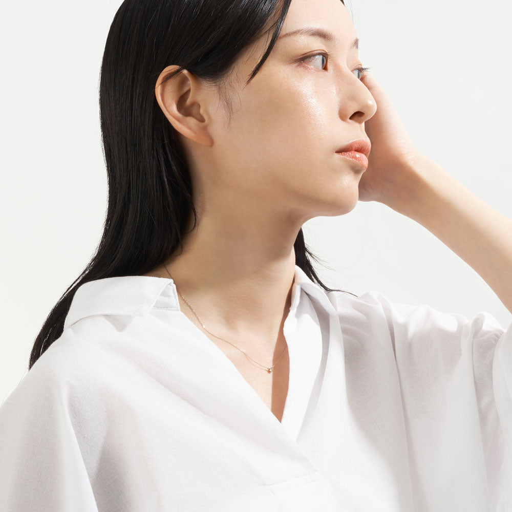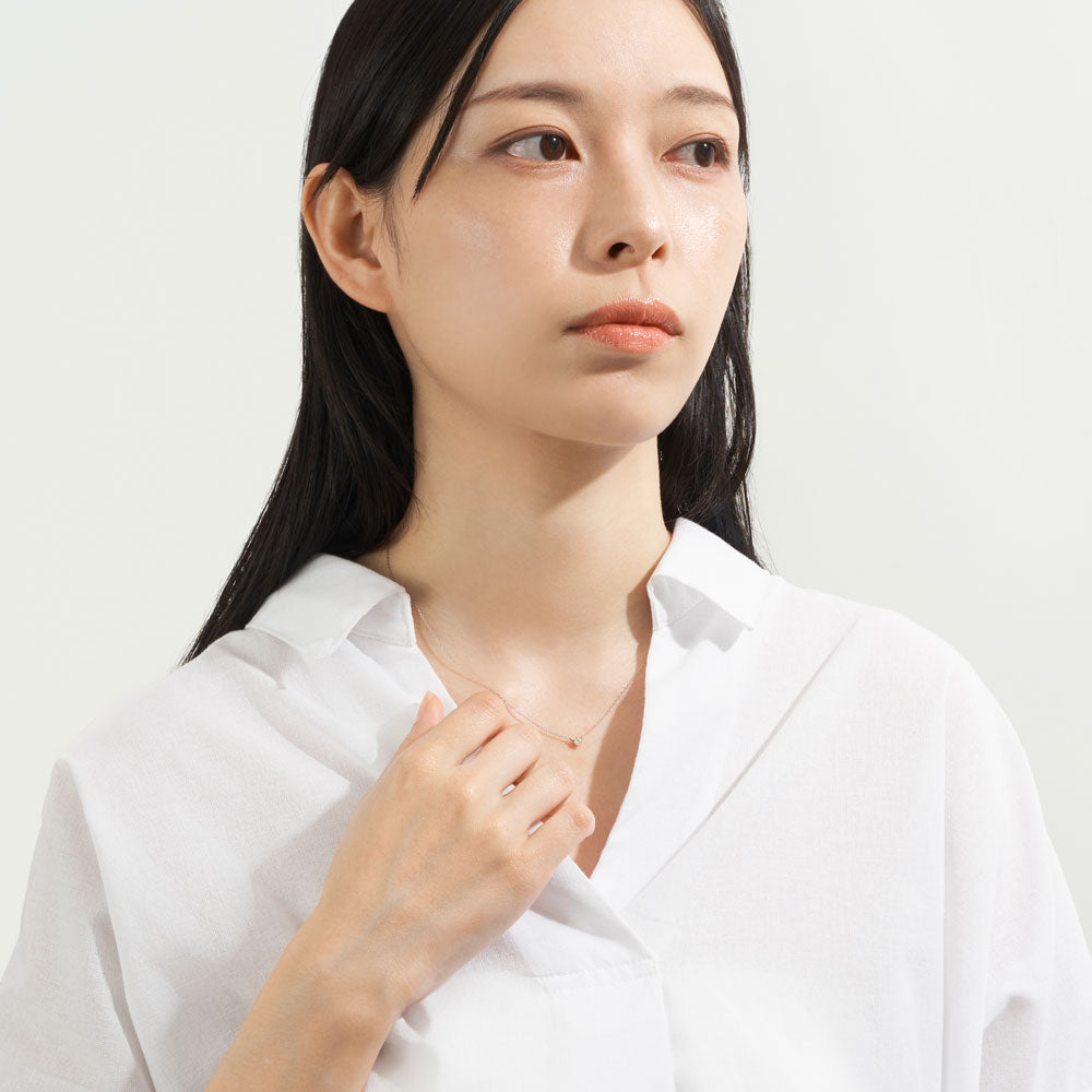 まるでダイヤモンドがそのまま肌に溶け込むかのように馴染み、首元からあなたの魅力を引き立てるアイテムです。