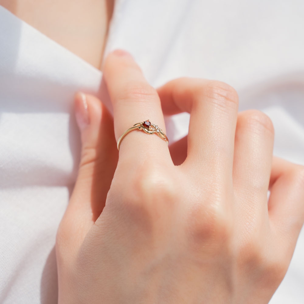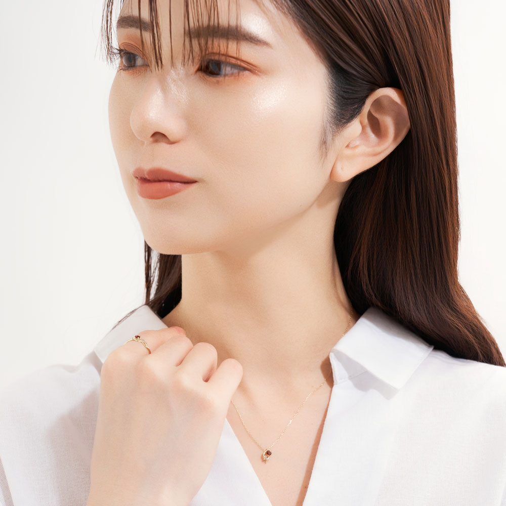 瑞々しい赤の輝きに、繊細なダイヤモンドを添えることで、甘さの中に上品さを感じるデザインに仕上げました。