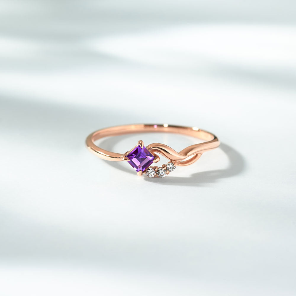 上品な紫が印象的な、スクエアカットのアメジストを主役にしたK10ピンクゴールドリング。