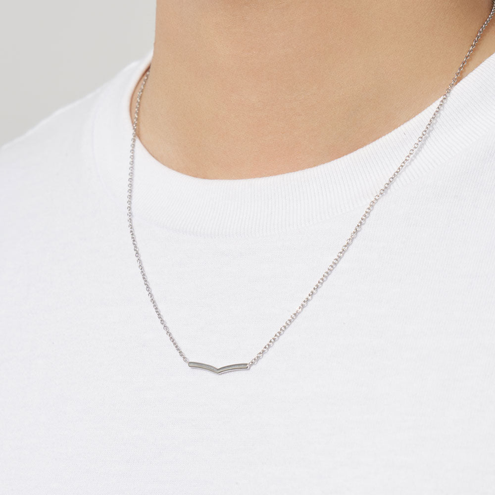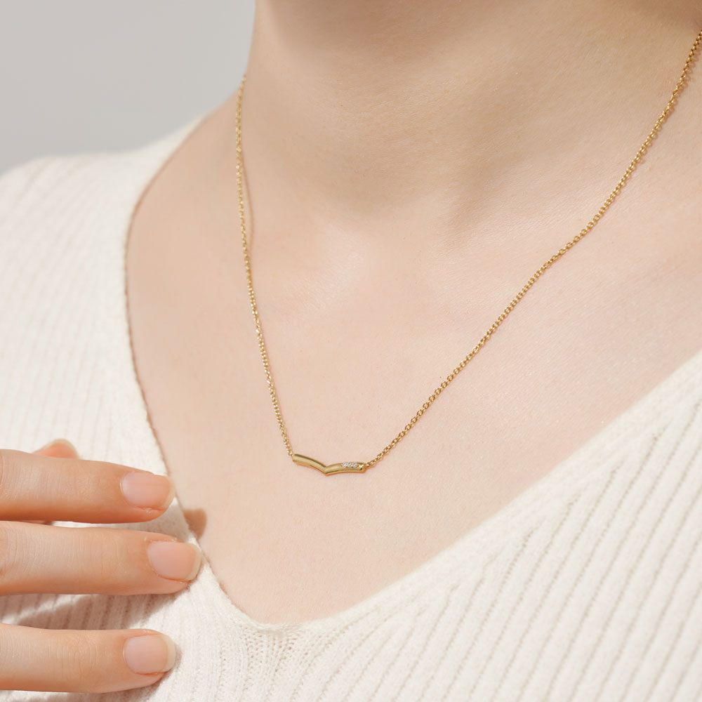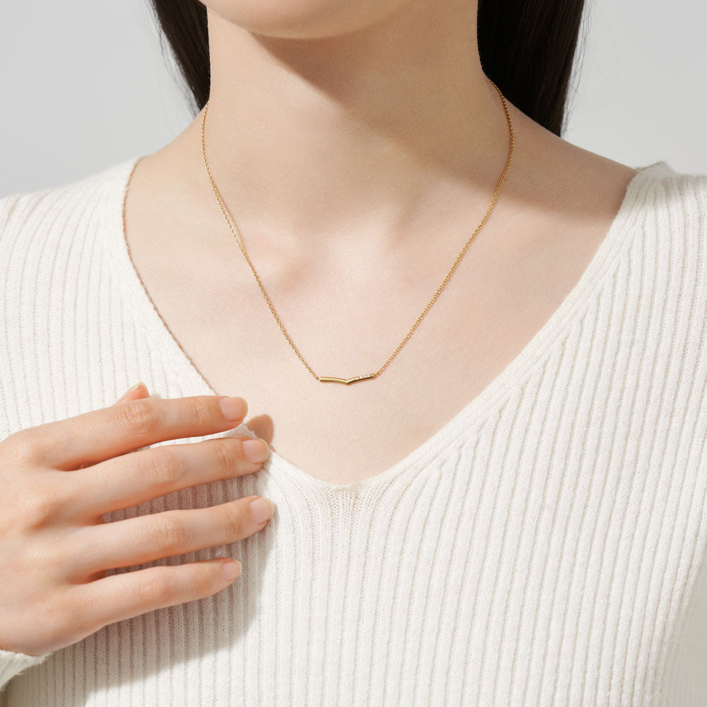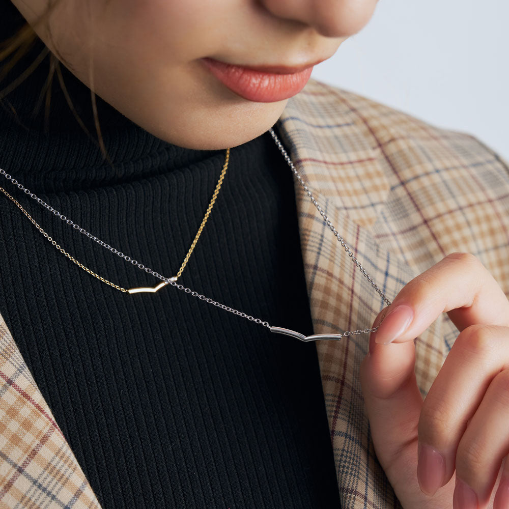 そっと寄り添うように描かれた、やさしいVラインデザインのペアネックレス。