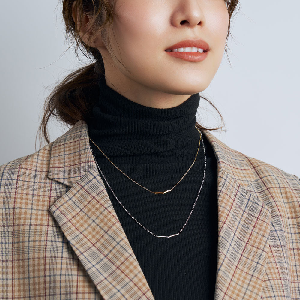 洗練されたシンプルさの中に、ふたりの想いをそっと閉じ込めたペアネックレスです。