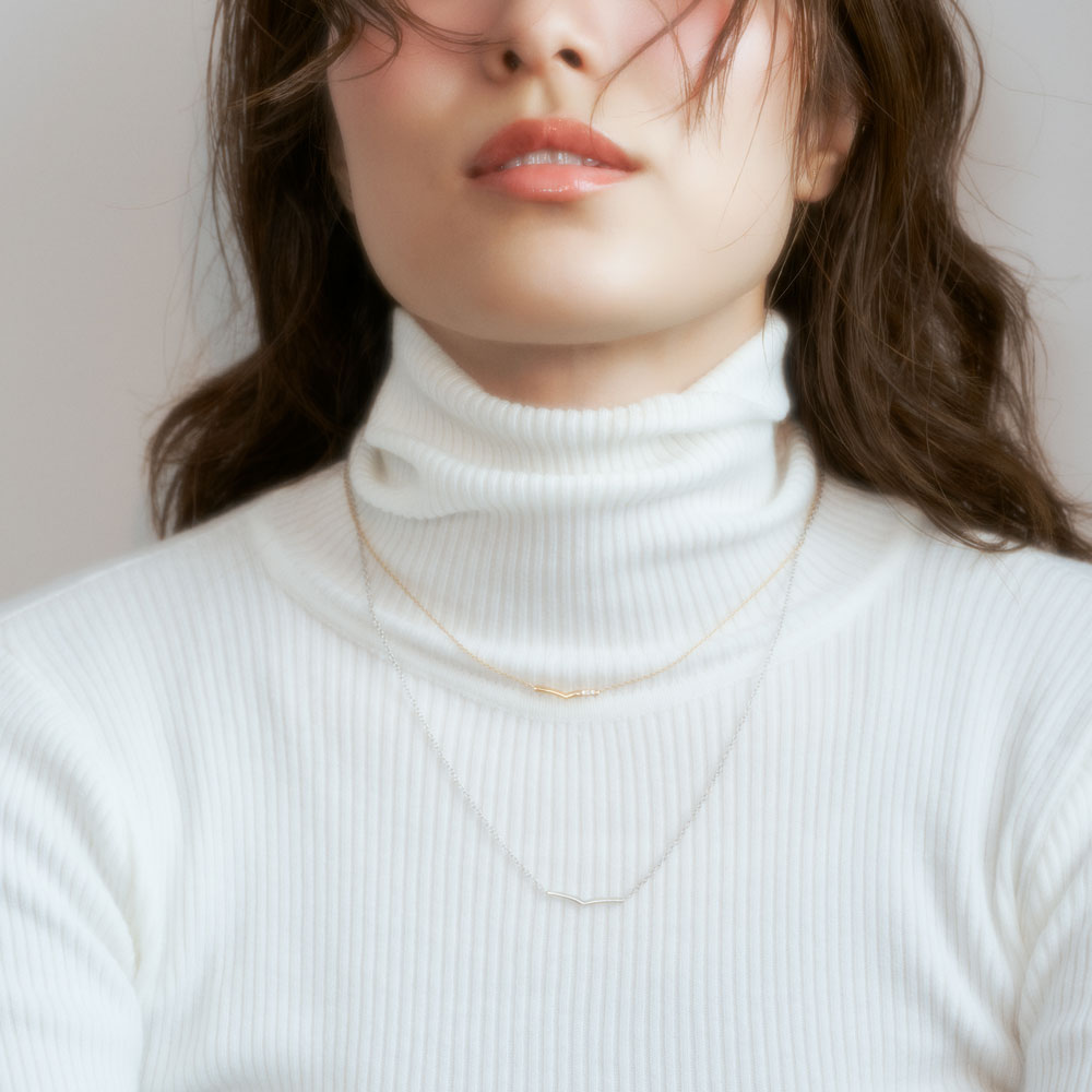ふたつのネックレスが、まるで同じ未来に向かう気持ちを重ねるように、静かに寄り添います。